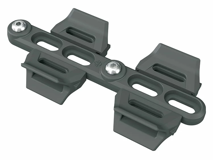 Le CAGE SHIFTER+ universel permet de déplacer de 1,5 à 4,5 cm les trous de porte-bidon présents dans le cadre. Grâce à son design plat, cet adaptateur pratique en polycarbonate léger s’intègre discrètement au cadre. Une fois monté, le porte-bidon peut être facilement fixé au CAGE SHIFTER à l’aide de deux vis.